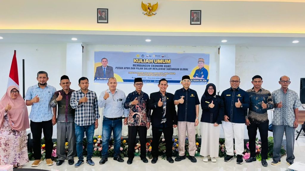 Turut hadir dalam kegiatan ini Kepala Kanwil DJP Aceh, Dr. Paryan, Ak., M.M., selaku narasumber utama; Kepala KPP Pratama Aceh Besar, Ibu Suci Lestari Hakam, SST., Ak., M.Ak.; serta Kepala KP2KP Sigli, Bapak Lusi Wiratno, beserta jajaran. Kehadiran para pejabat DJP Aceh tersebut menjadi bentuk nyata dukungan institusi perpajakan terhadap penguatan literasi fiskal di lingkungan perguruan tinggi.